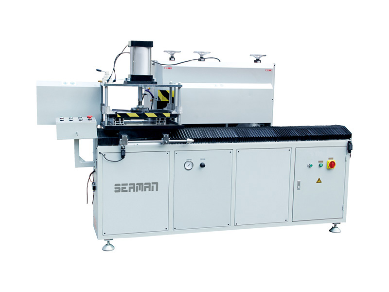 該機(jī)增加了可重直切斷的鋸片,保證了加強(qiáng)中挺型材所需端面一次鐵削完成,效率高。